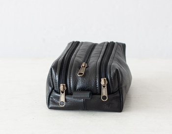 Estuche de cuero negro con cremallera para lápices, estuche de lápices de oficina, bolsa de viaje