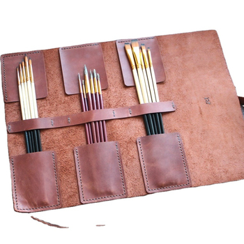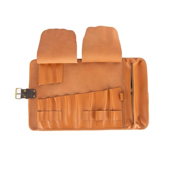 Brun bronzage avec étui en rouleau pour gaine de chef à boucle, rouleau de gaine en cuir pleine fleur pour outils pochette roulante pour barbier produit OEM et FBA