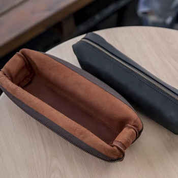 असली लेदर डेस्क कलम धारक पाउच चमड़ा स्लिम पेंसिल भंडारण के मामले, जिपर पाउच, कार्यालय पेन पेंसिल केस