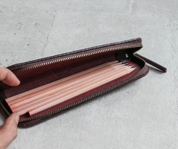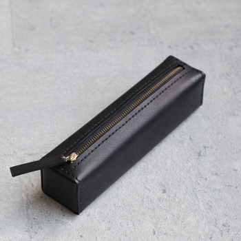 Real Leather Desk Pen Holder Pouch Leather Slim Pencil Storage Case, Zipper Pouch, Office Pen Pencil Case